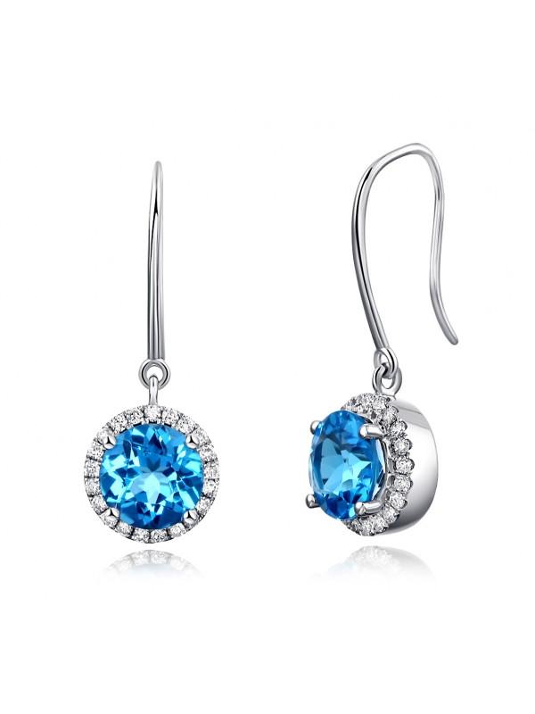 1.55ct each, Round Cut Blue Topaz and Diamond Halo Earrings, 14kt White Gold