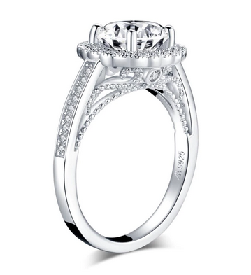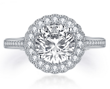 2.00ct Vintage Brilliant Cut, Diamond Halo Engagement Ring, 925 Silver