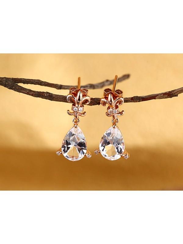 3.50ct each, Vintage Pear Cut White Topaz and Diamond Earrings, 14kt Rose Gold