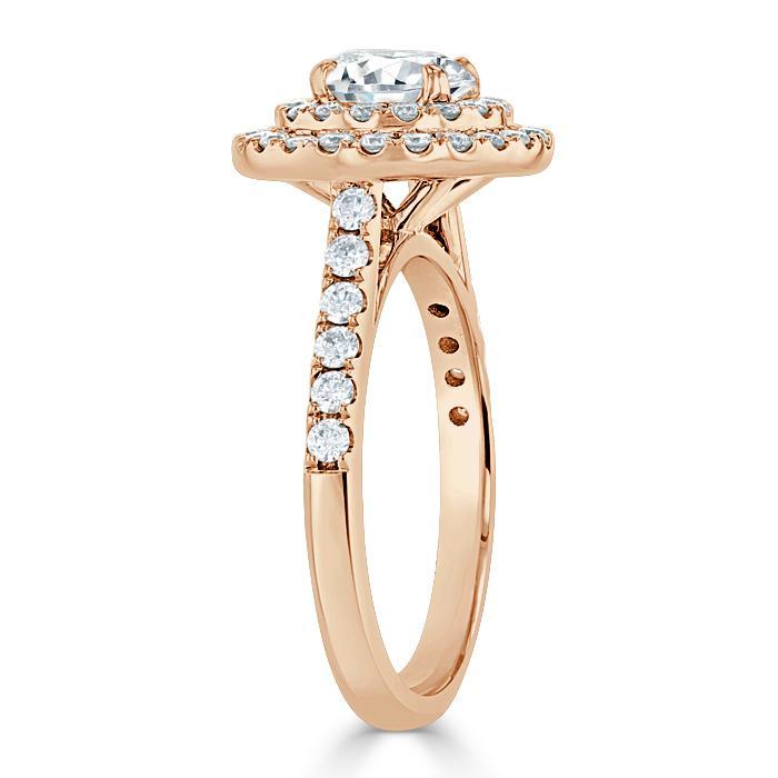 Lab-Diamond, Round Cut Double Halo Engagement Ring, Tiffany Style